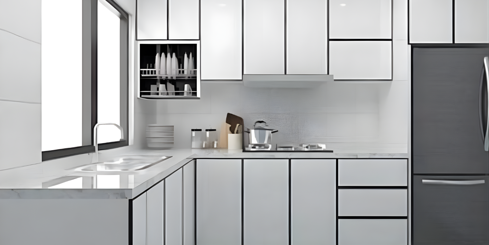 Crafted with premium aluminium and stainless steel, these kitchens are built to last, resisting heat, moisture, and daily wear.